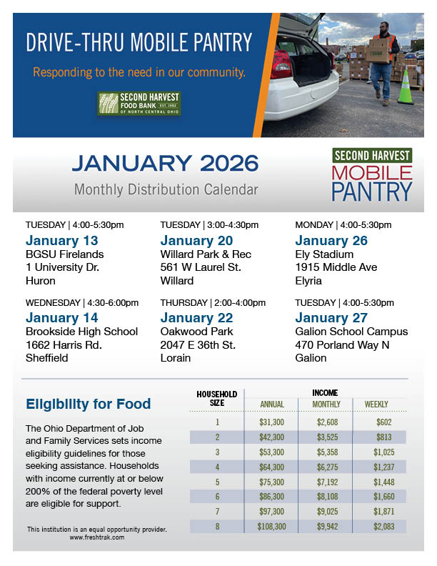 Our drive-thru mobile pantries allow Second Harvest to distribute boxes of assorted shelf-stable food, frozen meat, dairy and produce to hundreds of households throughout our service area.